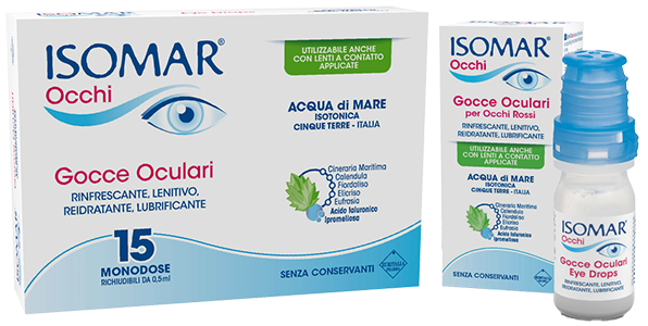 تحتوي منتجات Isomar للعيون على مياه بحر متساوية الضغط الأسموزي.
